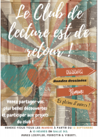 C’est la rentrée et le club lecture vous accueillera tous les mardis à partir du 15 septembre à 13h en salle 312 !